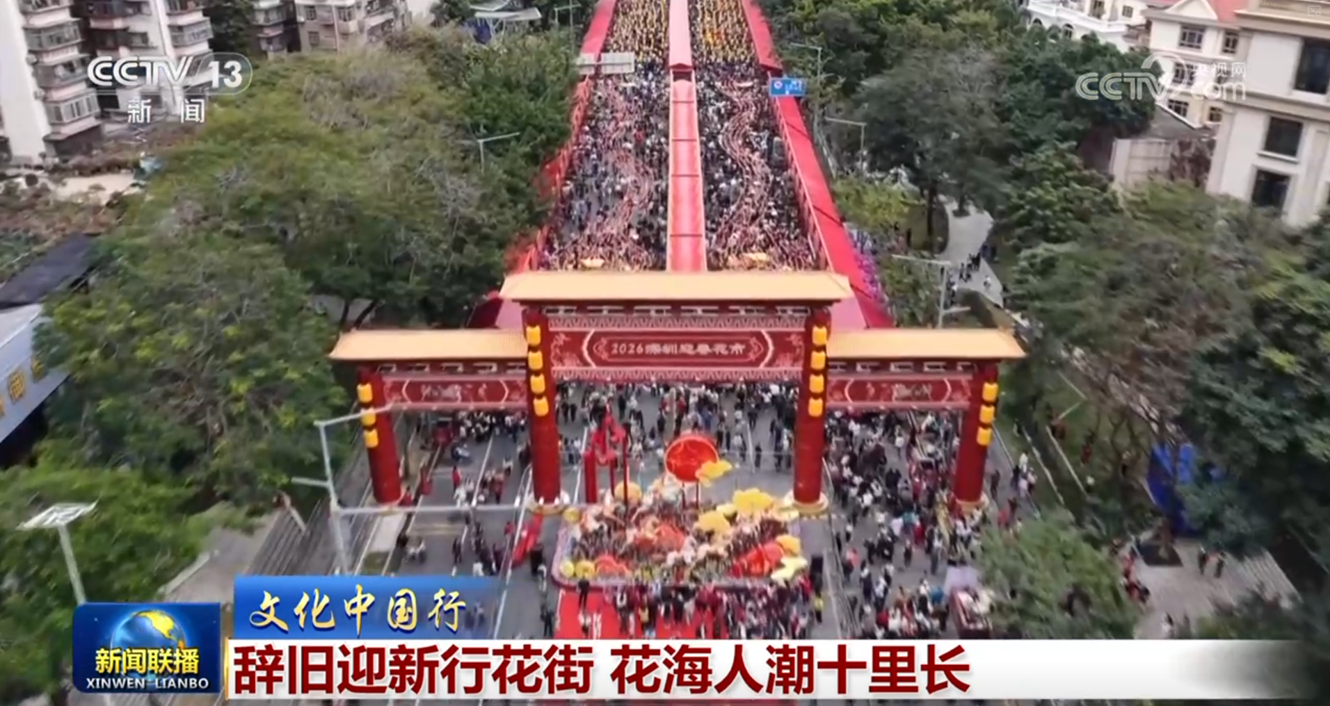(新闻联播):行花街是岭南地区迎新春的一项民俗活动。人们在热闹的花市里,选购年花年货,品特色美食、赏民俗表演,2月21日的《文化中国行》让我们一起领略这项国家级非遗“花海人潮十里长”的独特魅力。