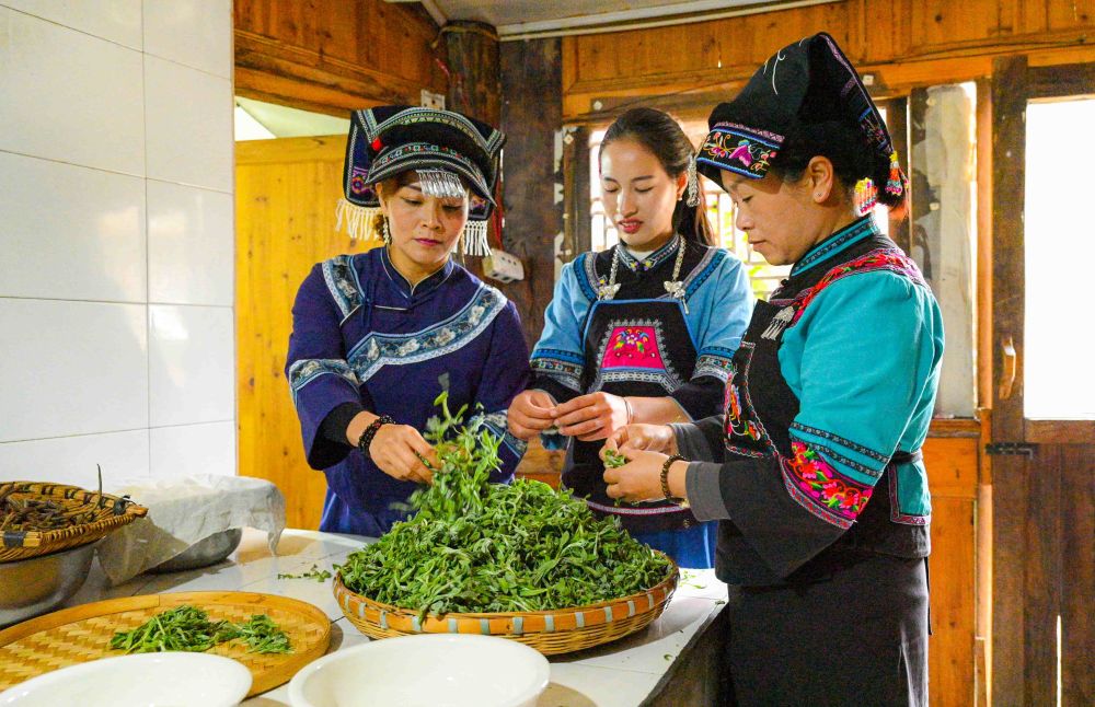 村民正在展示苗族非遗油茶制作技艺