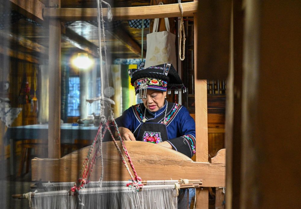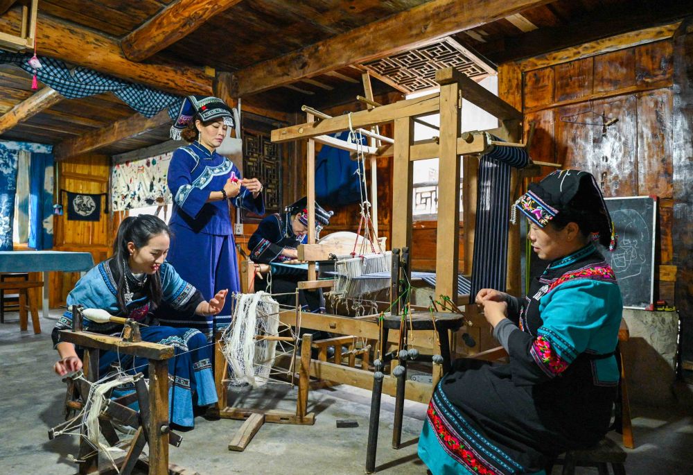 村民正在展示苗族非遗织锦技艺