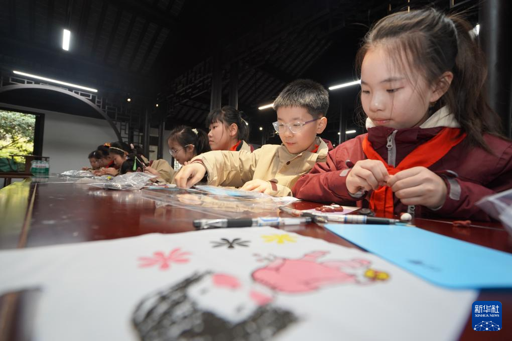 3月26日,学生在研学活动中参观、体验民俗。