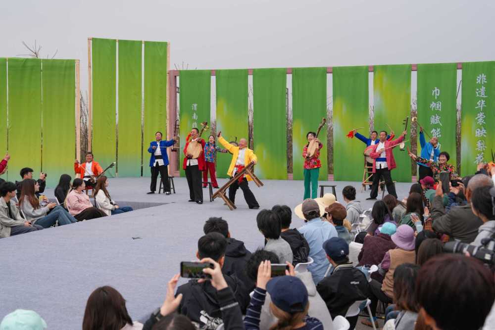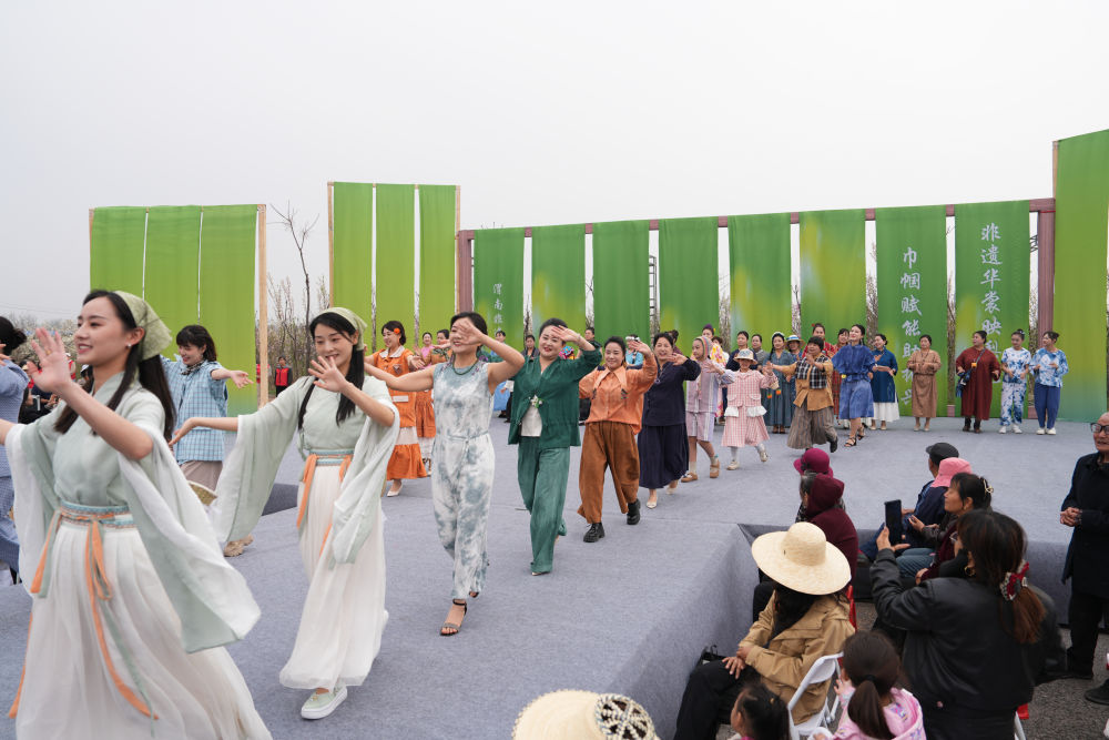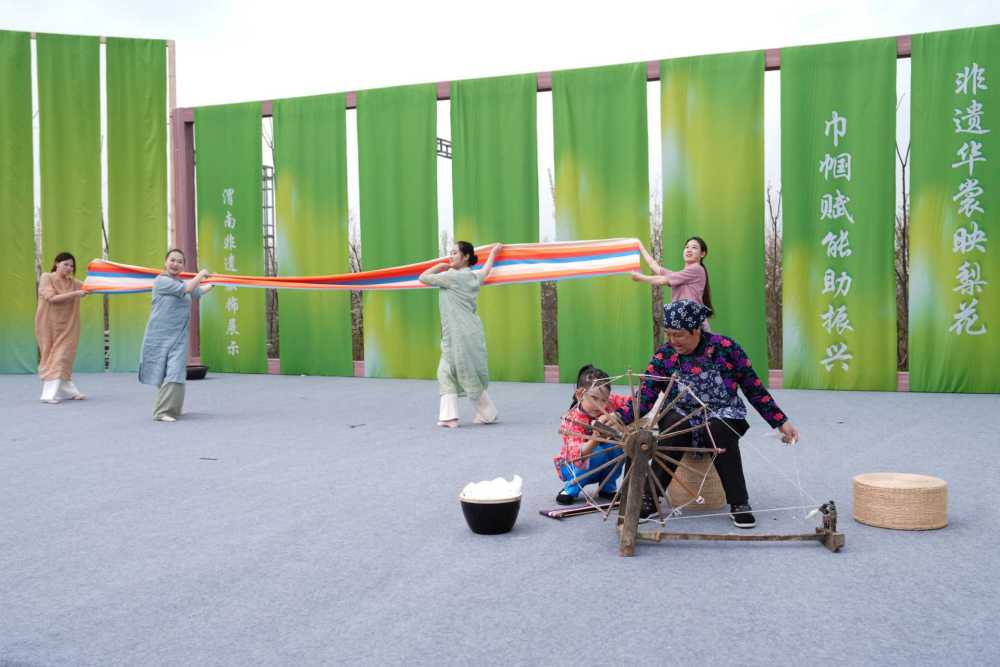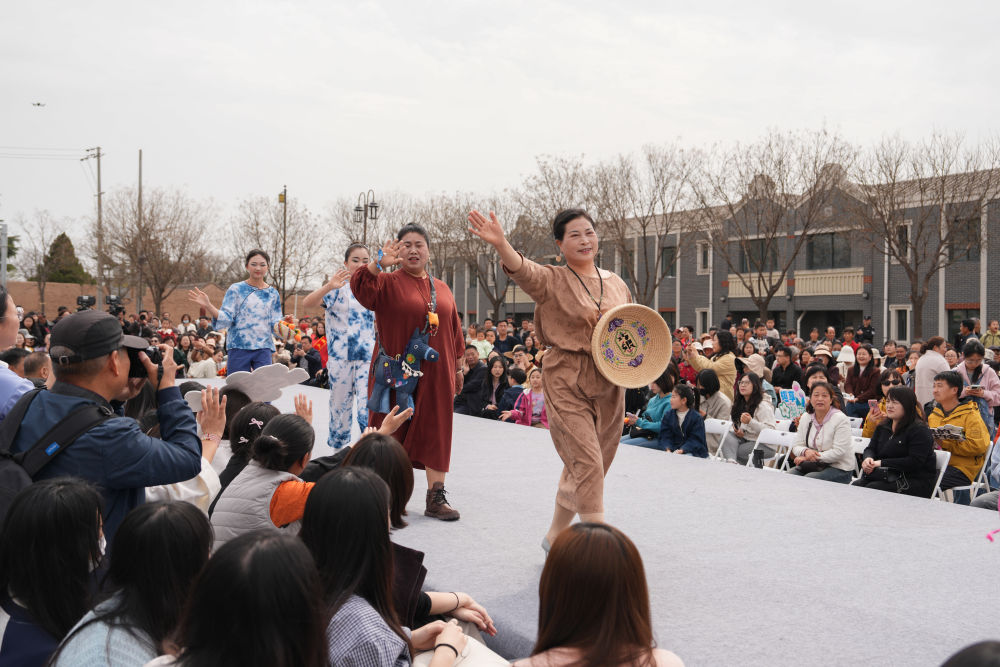 上午10:30,活动在情景展示《渭水袖风》中拉开帷幕。3位文旅推介官以拉家常的方式登台,推介渭南春日旅游线路和特色美食。主题走秀分为《渭塬根脉》《乡产振兴》《巾帼逐光》三个篇章。方言童谣《纺车谣》响起,非遗传承人身着刺绣、草编、柿染、土布制成的传统服饰缓缓走来。黄河老腔吼起来,乡村巾帼带头人捧着富平柿饼、白水苹果、大荔冬枣、蒲城酥梨等特色农产品登场。女企业家们身着非遗服饰走上台,展示从田间地头到市场前沿的创业成果。