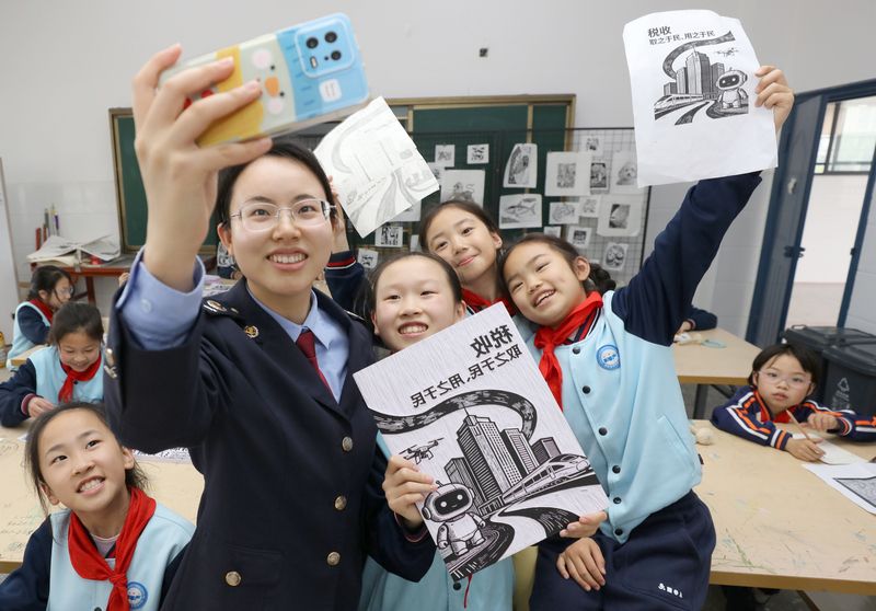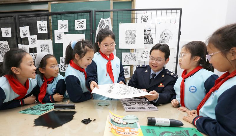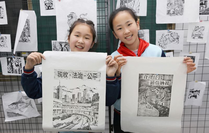 2026年4月7日,江西宜春,国家税务总局宜春市袁州区税务局青年干部来到宜春市文笔峰小学,开展“非遗版画税宣课堂”活动,组织版画社团学生听税收主题故事、画税收主题版画。活动旨在通过非遗版画的形式,向学生普及税法知识,让“税收”种子根植童心。袁州区是“江西省民间艺术之乡——版画之乡”,袁州版画于2008年5月被列入江西省第二批省级非物质文化遗产名录。