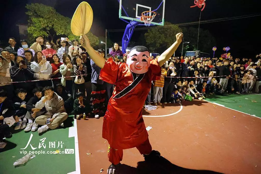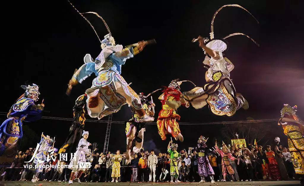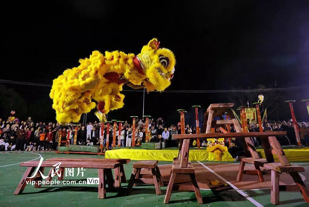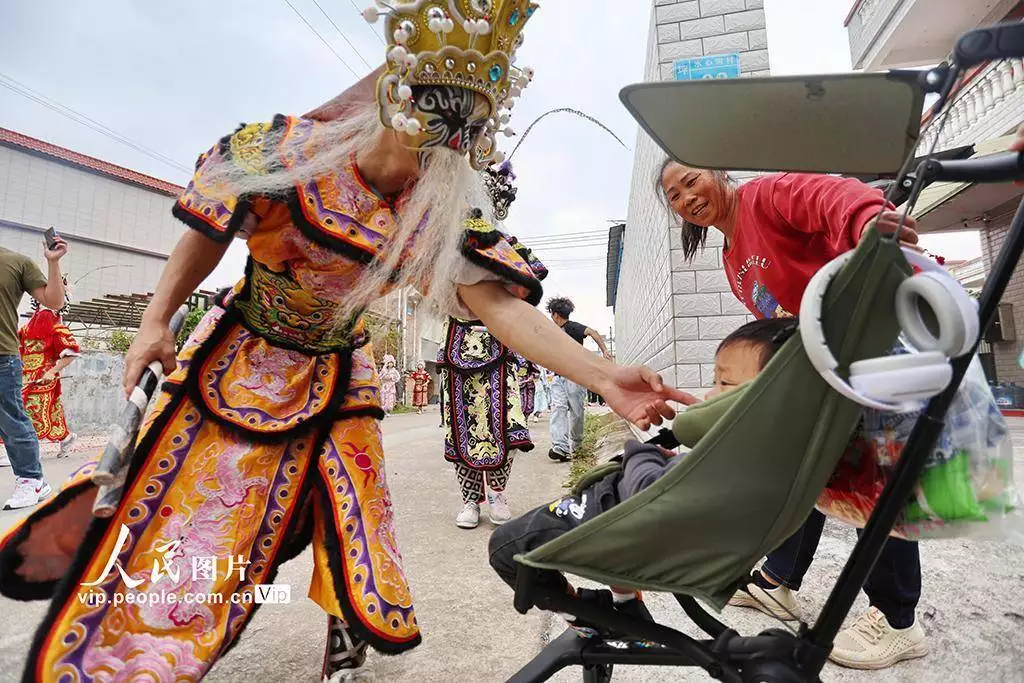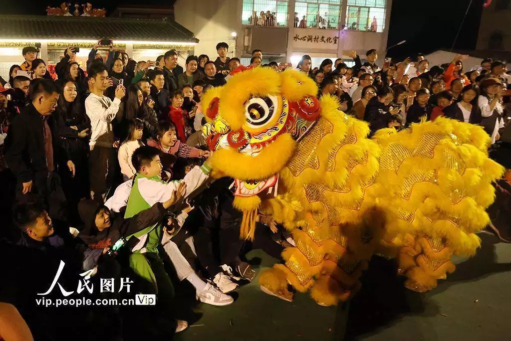 2026年3月11日,广东鹤山市鹤城镇坪山水心洞村热闹非凡,客家花炮庙会精彩开场,英歌舞、舞龙、舞狮等非遗项目轮番上演,吸引众多村民驻足观赏、拍照留念。黄继明摄(人民图片网)